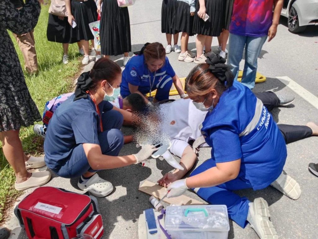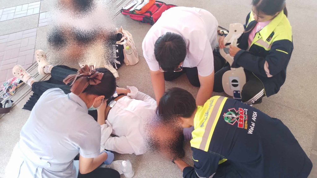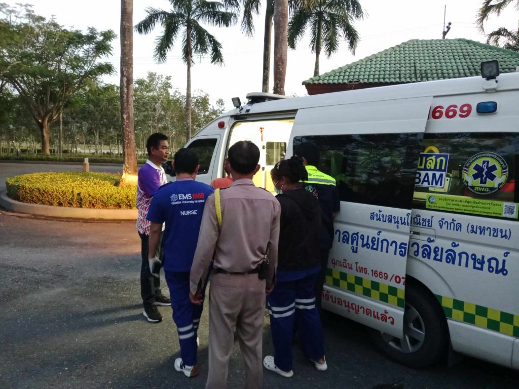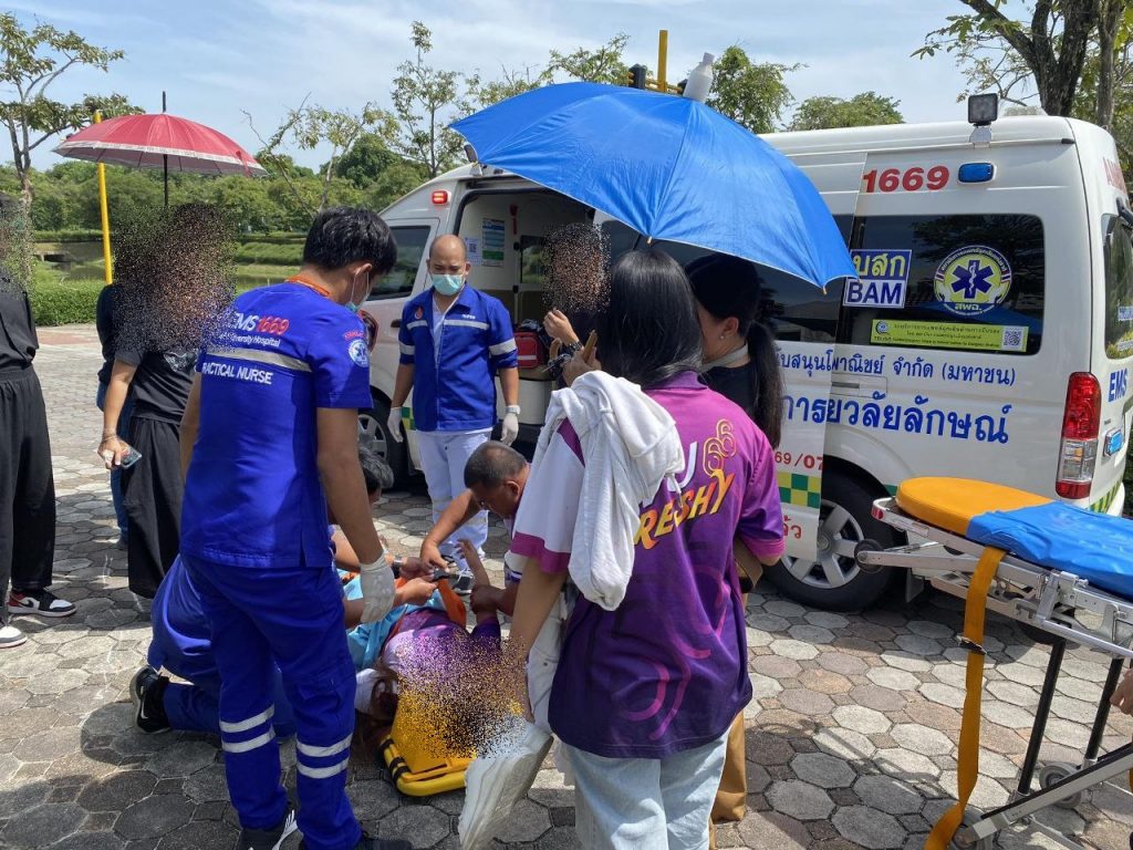 วลัยอาสารุดช่วย! หญิงเป็นลมล้มบาดเจ็บ บริเวณอาคารสถาปัตย์ ม.วลัยลักษณ์