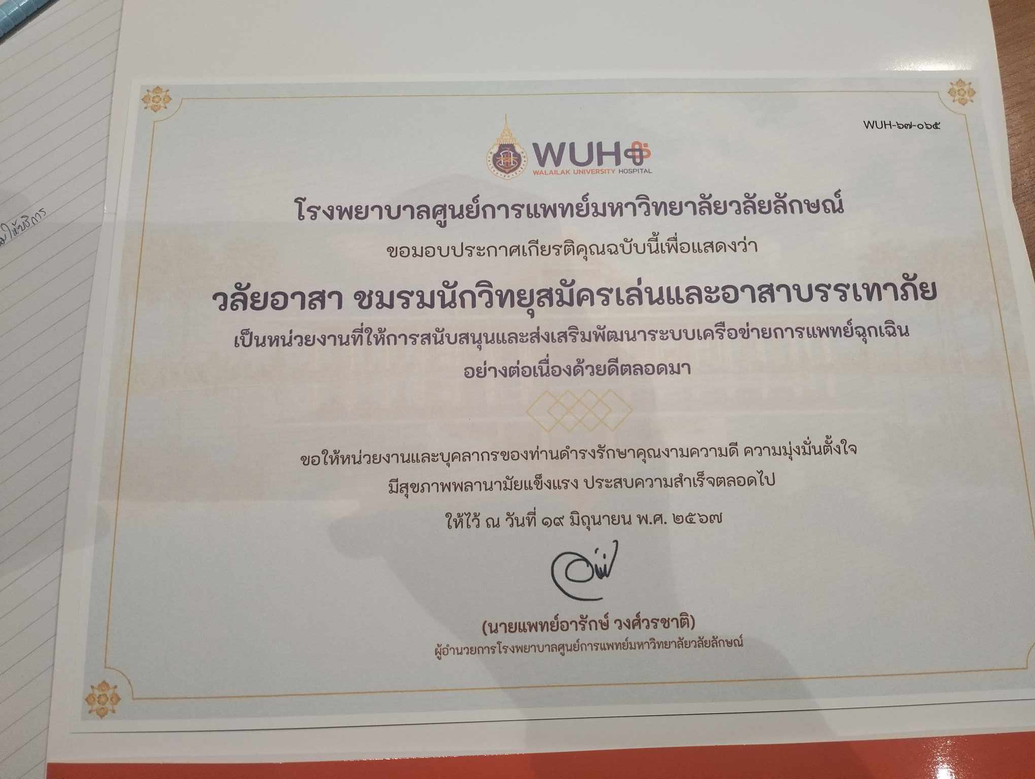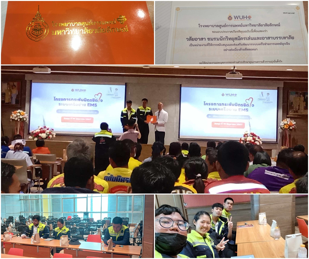 วันพุธ ที่ 6 ตุลาคม 2567 เวลา 13.00น. – 16.00น. ชมรมนักวิทยุสมัครเล่นและอาสาบรรเทาภัย (วลัยอาสา) มหาวิทยาลัยวลัยลักษณ์ ได้ส่งตัวแทนเข้าร่วมโครงการกระซับมิตรชิดใจระบบเครือข่าย EMS ณ ห้องประชุมหัวตะพาน อาคาร A ชั้น 3 โรงพยาบาลศูนย์การแพทย์มหาวิทยาลัยวลัยลักษณ์