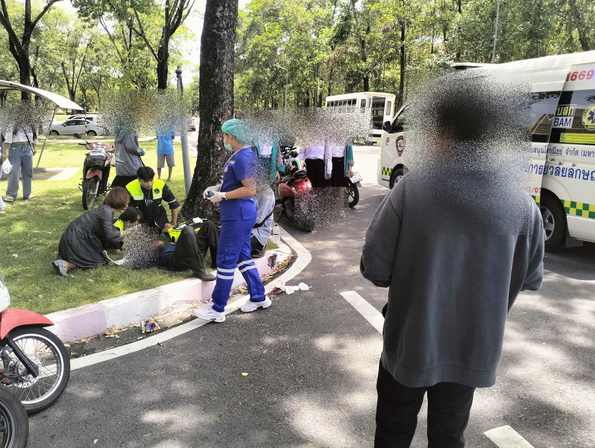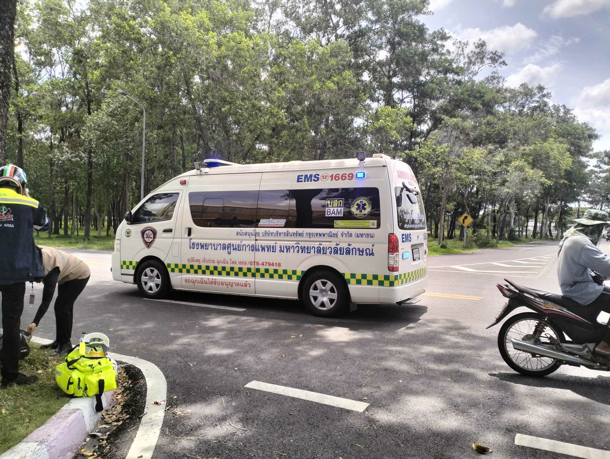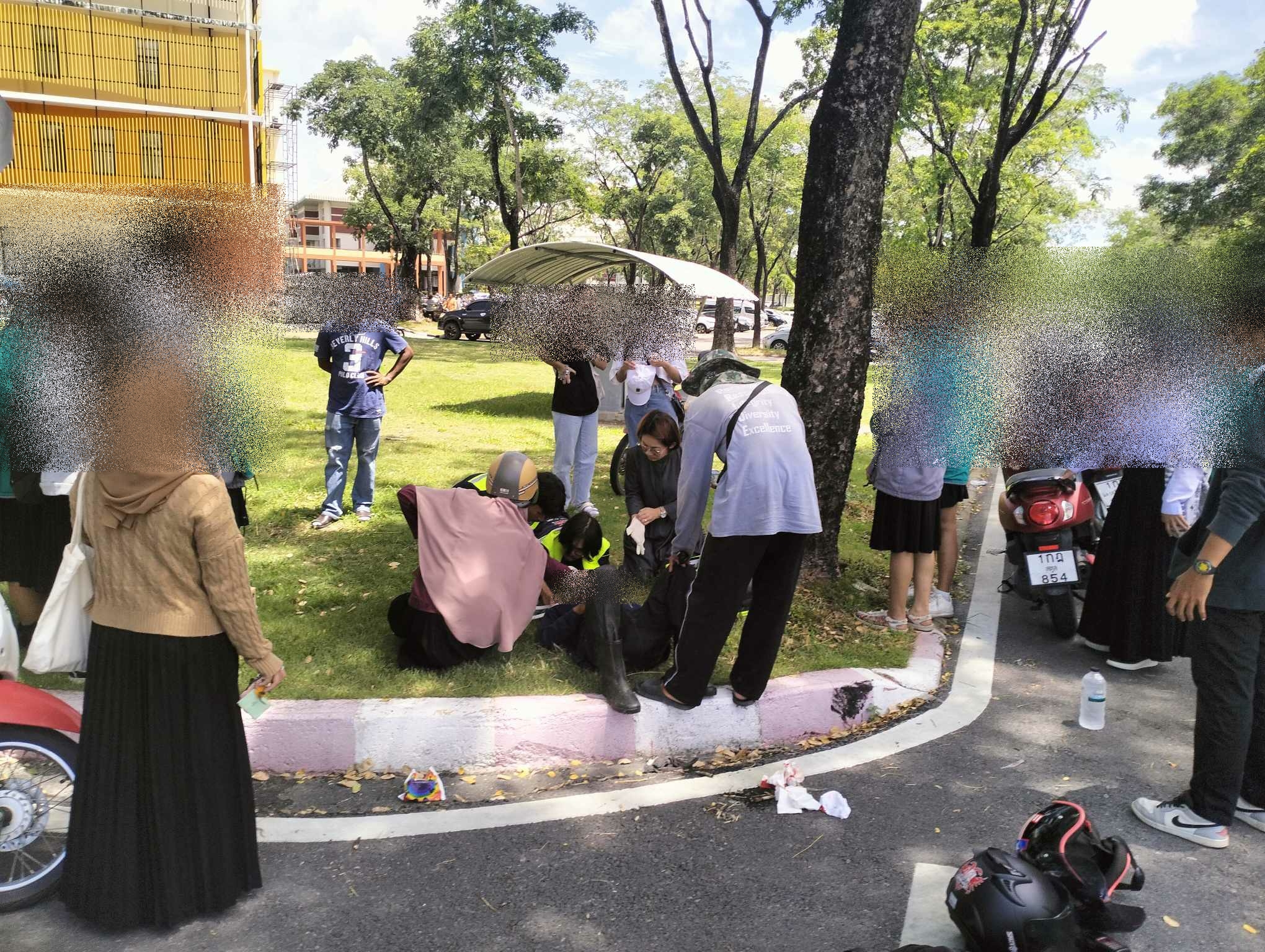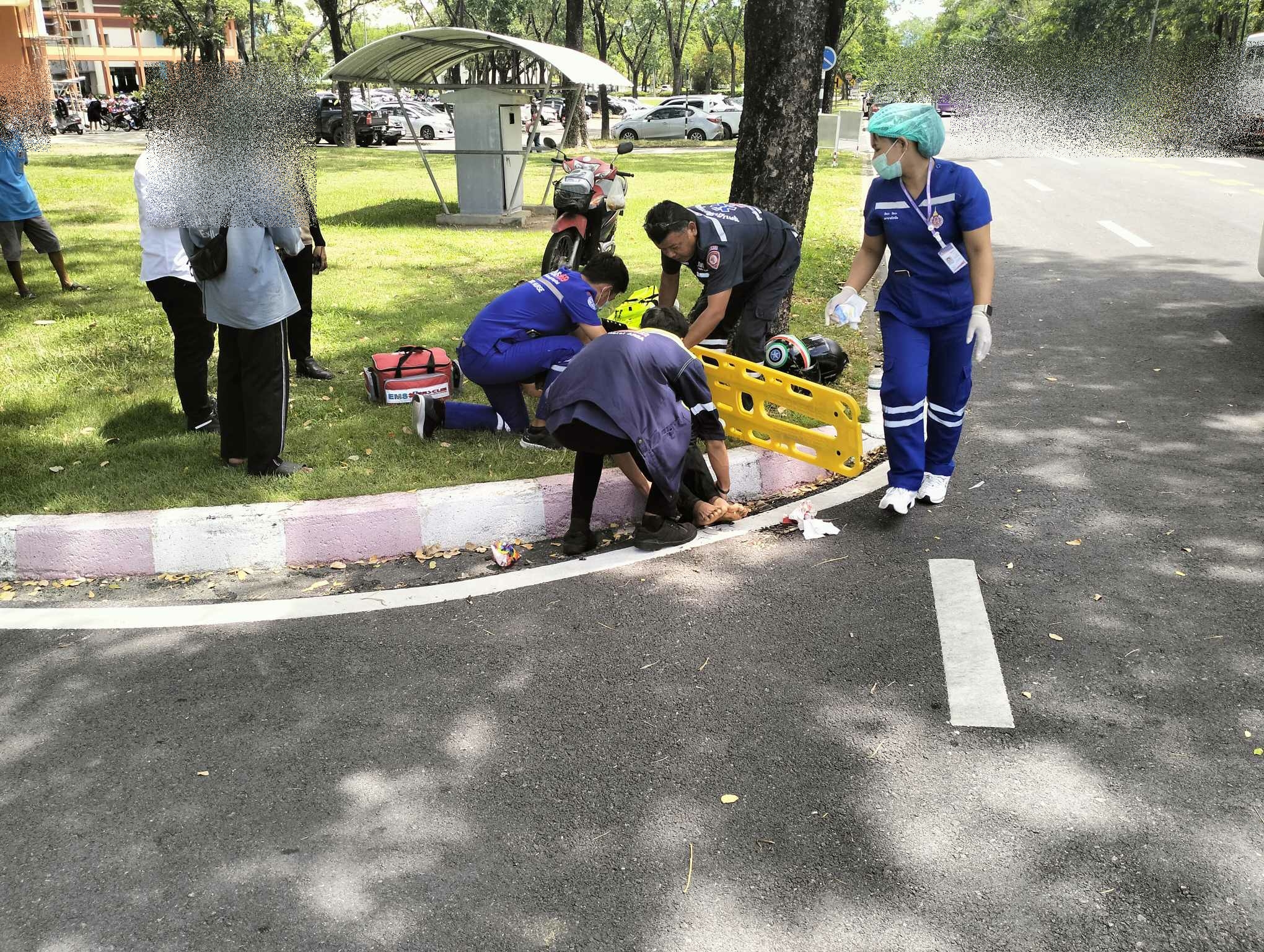 เวลา 11.31น. ทางชมรมนักวิทยุสมัครเล่นและอาสาบรรเทาภัย(วลัยอาสา) มหาวิทยาลัยวลัยวลักษณ์ ออกตรวจสอบเหตุ ว.40 ระหว่าง จยย.+จยย. แยกอาคารST(เรียนรวม6) ที่หมายพบผู้บาดเจ็บ 1ราย ศรีษะแตกและถลอกทั่วไปตามร่างกาย วลัยอาสาให้การปฐมพยาบาลที่เกิดส่งต่อให้หน่วยรถALS01 นำส่งโรงพยาบาลศูนย์การแพทย์ มหาวิทยาลัยวลัยลักษณ์