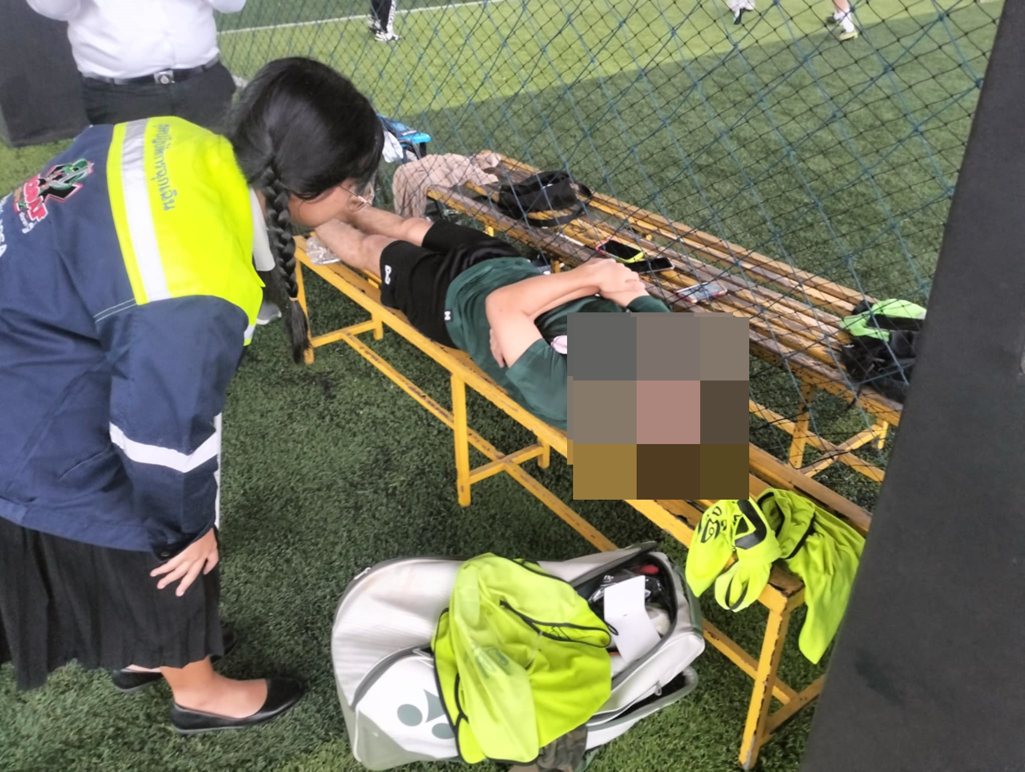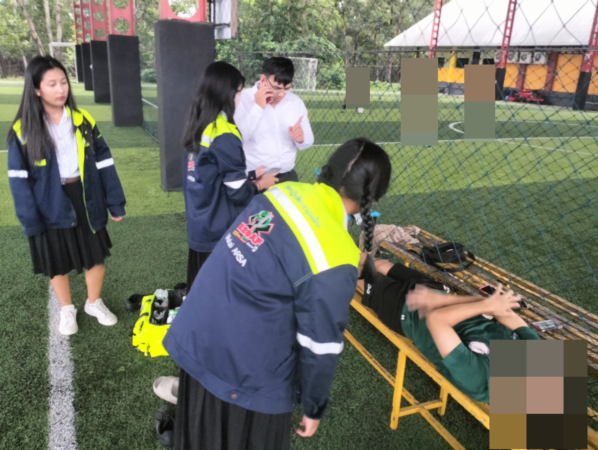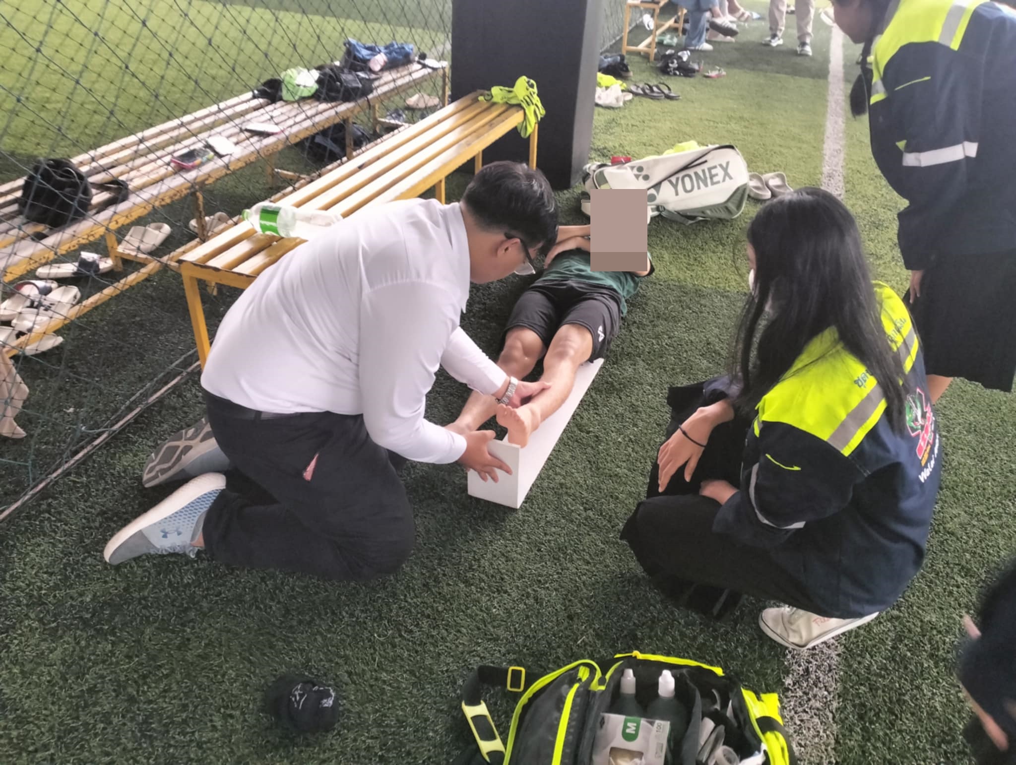 เวลาประมาณ 17.30 น. ทางชมรมนักวิทยุสมัครเล่นแสะอาสาบรรเทาภัย(วลัยอาสา) ออกตรวจสอบเหตุบาดเจ็บเท้า บริเวณสนามหญ้าเทียม มวล.
