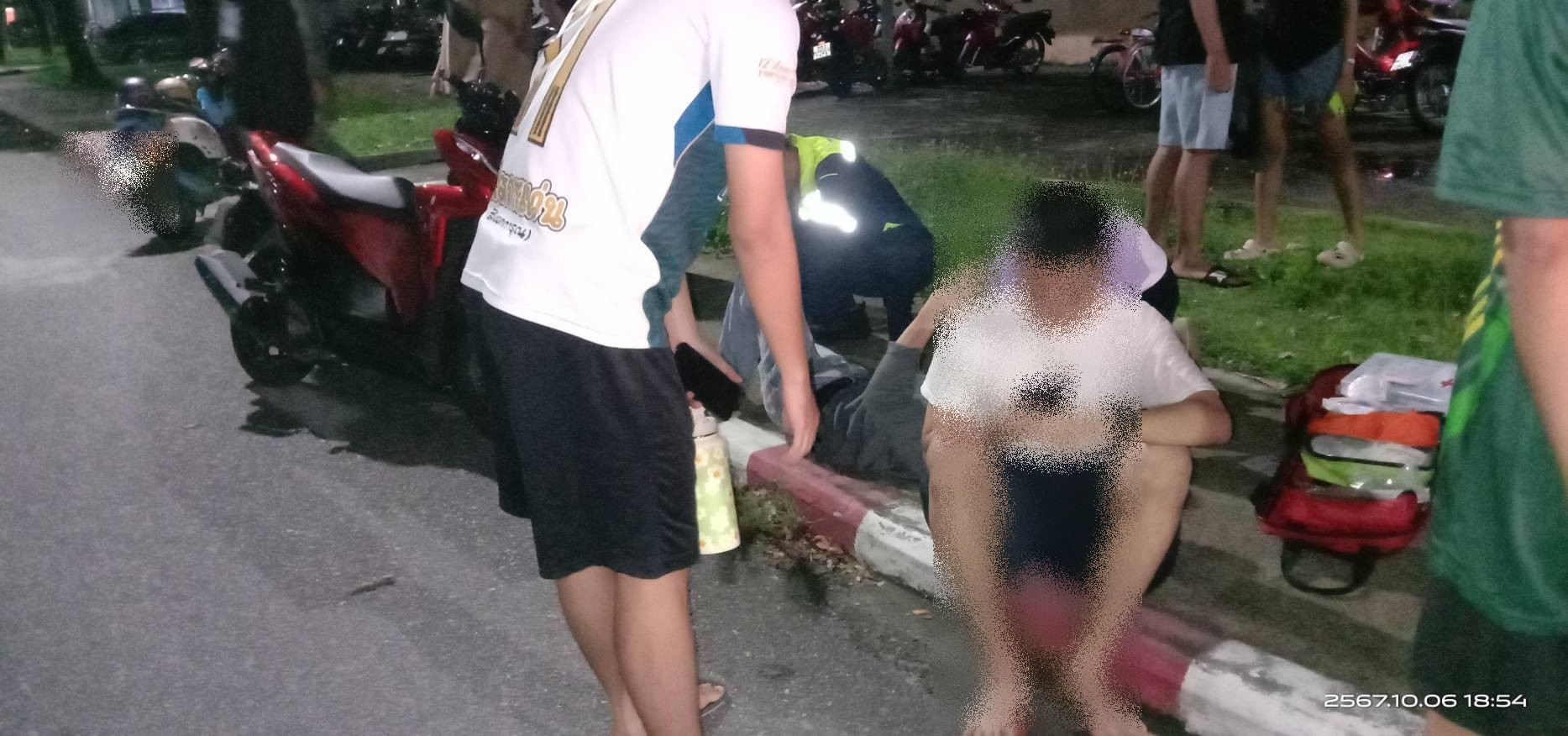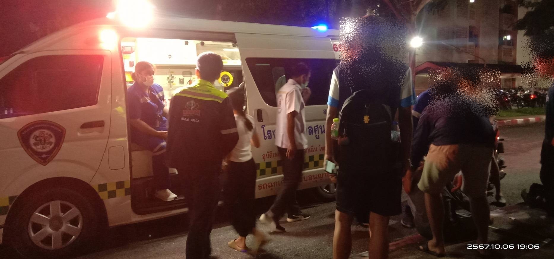 เวลาประมาณ 18.50 น. ทางชมรมนักวิทยุสมัครเล่นแสะอาสาบรรเทาภัย(วลัยอาสา) ออกตรวจสอบเหตุจักรยานยนต์เสียหลักล้มเองใกล้เคียงหอพักลักษณานิเวศ18 มหาวิทยาลัยวลัยลักษณ์ ที่หมายพบผู้บาดเจ็บ 2 ราย วลัยอาสาให้การปฐมพยาบาลที่เกิดเหตุ ประสานหน่วยรถALS01 นำส่งโรงพยาบาลศูนย์การแพทย์ มหาวิทยาลัยวลัยลักษณ์