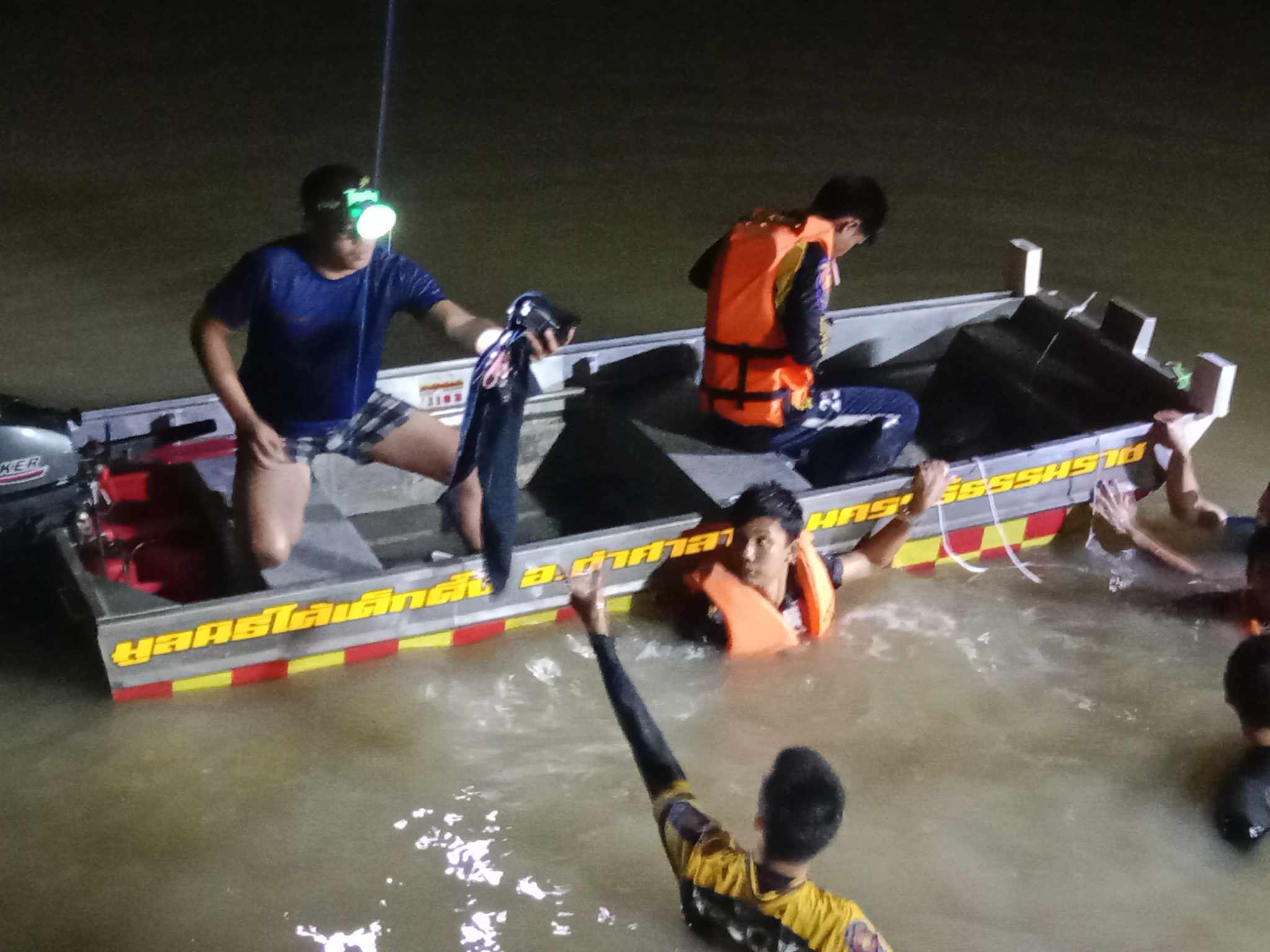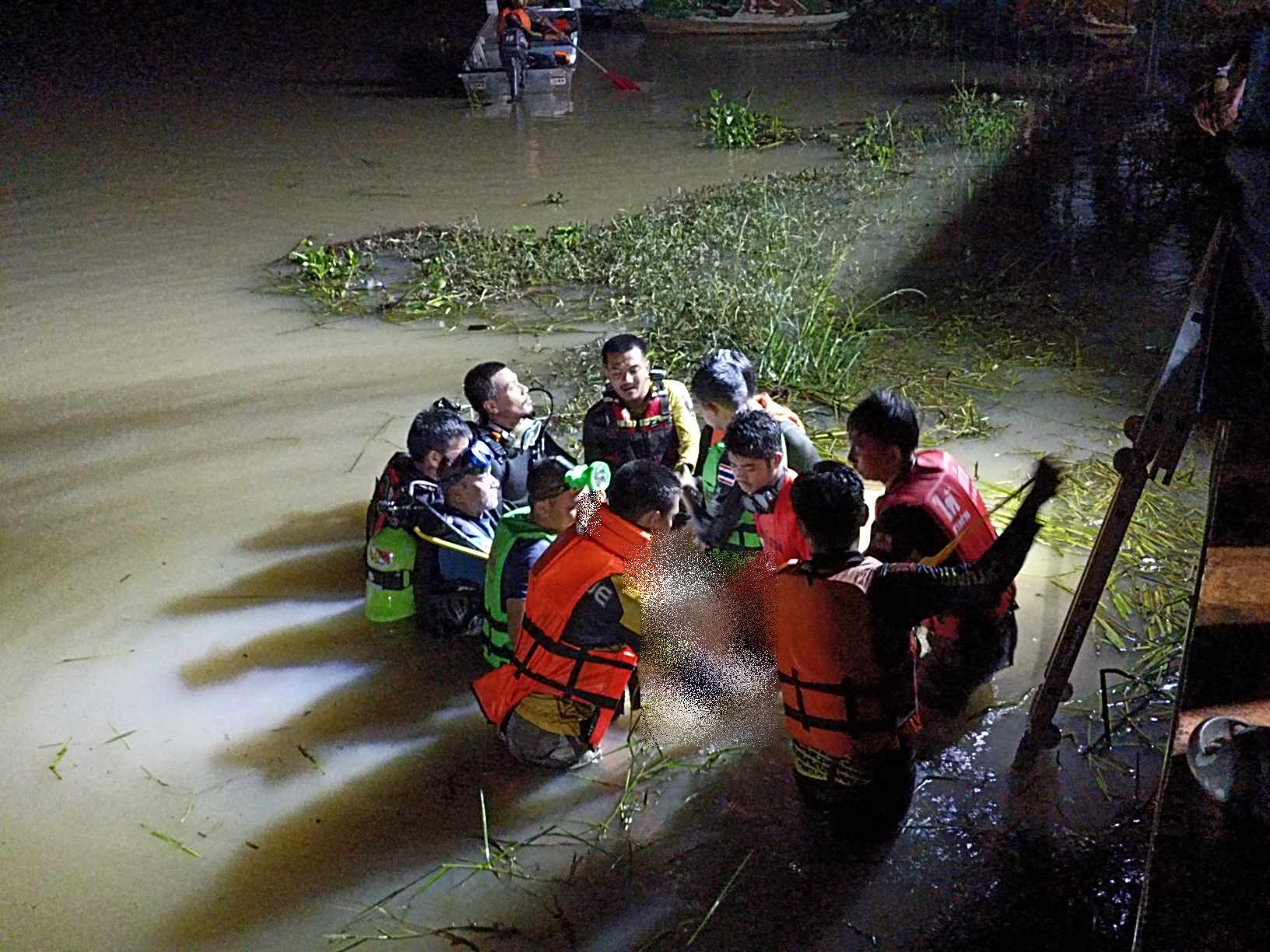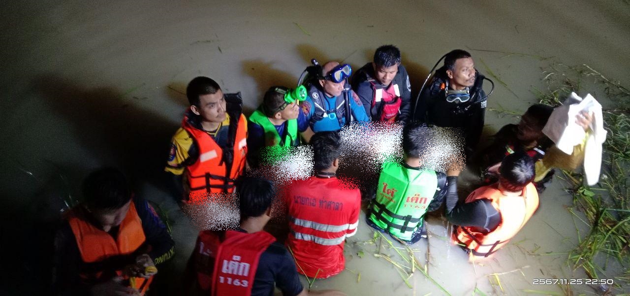 เจ้าหน้าที่จากหลายฝ่ายได้ร่วมปฏิบัติการค้นหาในสระน้ำดังกล่าวอย่างเต็มกำลัง จนกระทั่งเวลา 22.45 น. มูลนิธิใต้เต็กเซี่ยงตึ๊งได้พบร่างของนักศึกษาที่ไร้สัญญาณชีวิต ห่างจากร้านค้าเรือถีบราว 5 เมตร ได้นำร่างขึ้นมาจากน้ำ ประสานสภ.ท่าศาลาและโรงพยาบาลท่าศาลาเข้าตรวจสอบพื้นที่ดังกล่าว จากนั้นมูลนิธิใต้เต็กเซี่ยงตึ๊งส่งต่อไปยังโรงพยาบาลท่าศาลา เพื่อดำเนินการชันสูตรและสอบสวนสาเหตุที่แท้จริงต่อไป