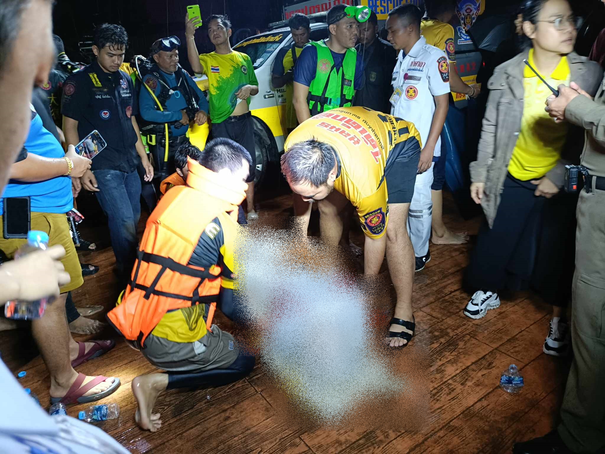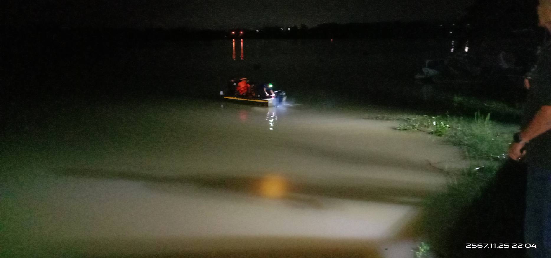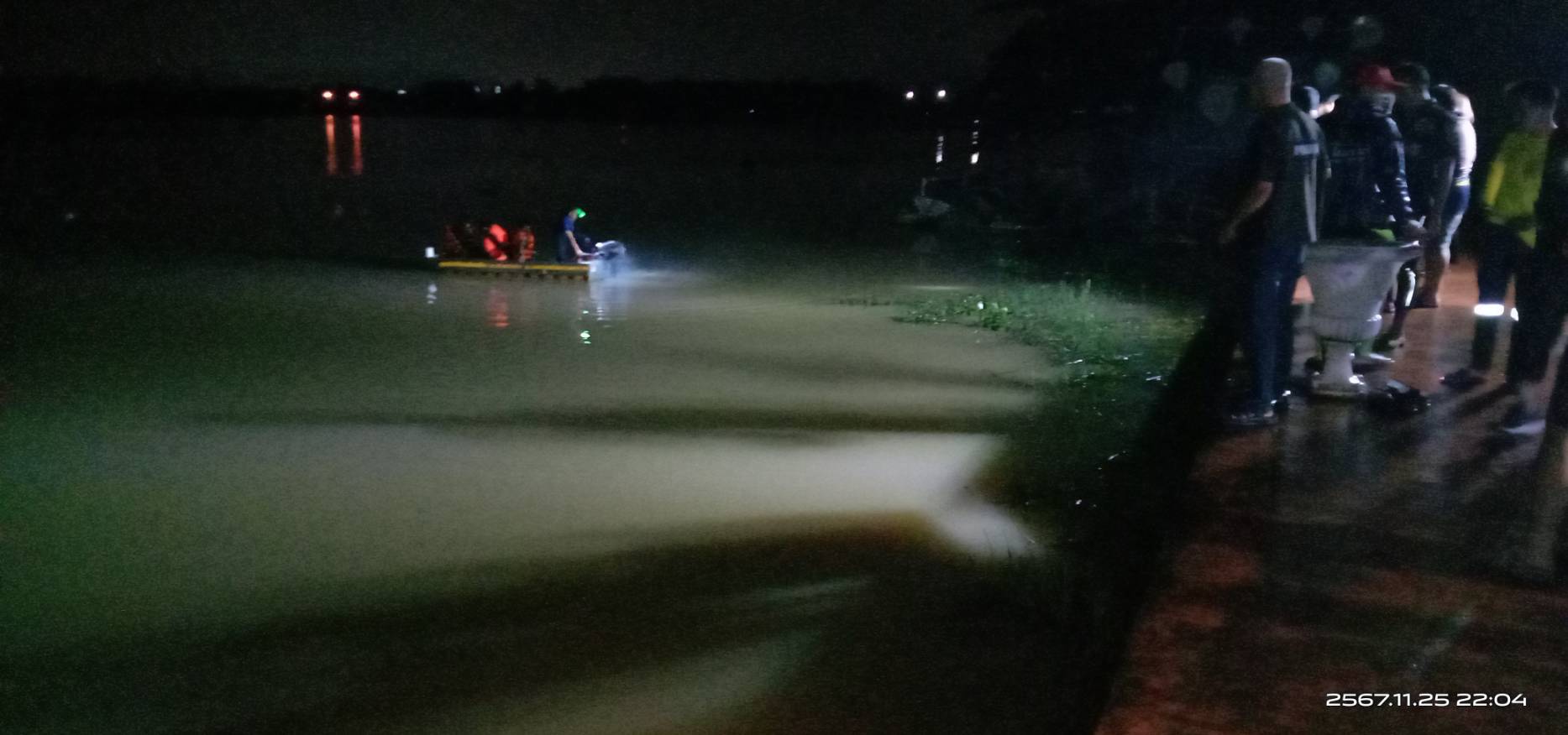 เจ้าหน้าที่จากหลายฝ่ายได้ร่วมปฏิบัติการค้นหาในสระน้ำดังกล่าวอย่างเต็มกำลัง จนกระทั่งเวลา 22.45 น. มูลนิธิใต้เต็กเซี่ยงตึ๊งได้พบร่างของนักศึกษาที่ไร้สัญญาณชีวิต ห่างจากร้านค้าเรือถีบราว 5 เมตร ได้นำร่างขึ้นมาจากน้ำ ประสานสภ.ท่าศาลาและโรงพยาบาลท่าศาลาเข้าตรวจสอบพื้นที่ดังกล่าว จากนั้นมูลนิธิใต้เต็กเซี่ยงตึ๊งส่งต่อไปยังโรงพยาบาลท่าศาลา เพื่อดำเนินการชันสูตรและสอบสวนสาเหตุที่แท้จริงต่อไป