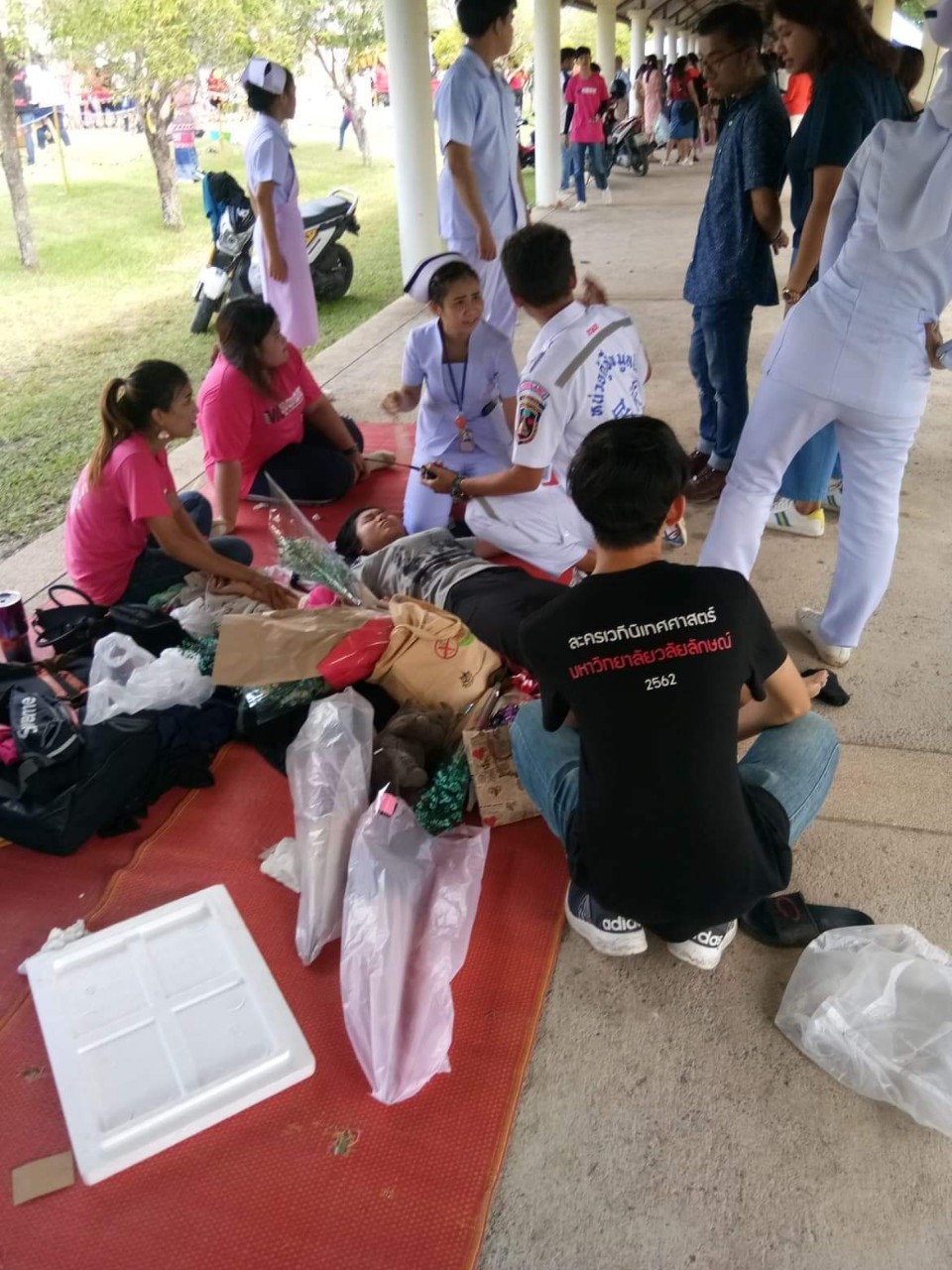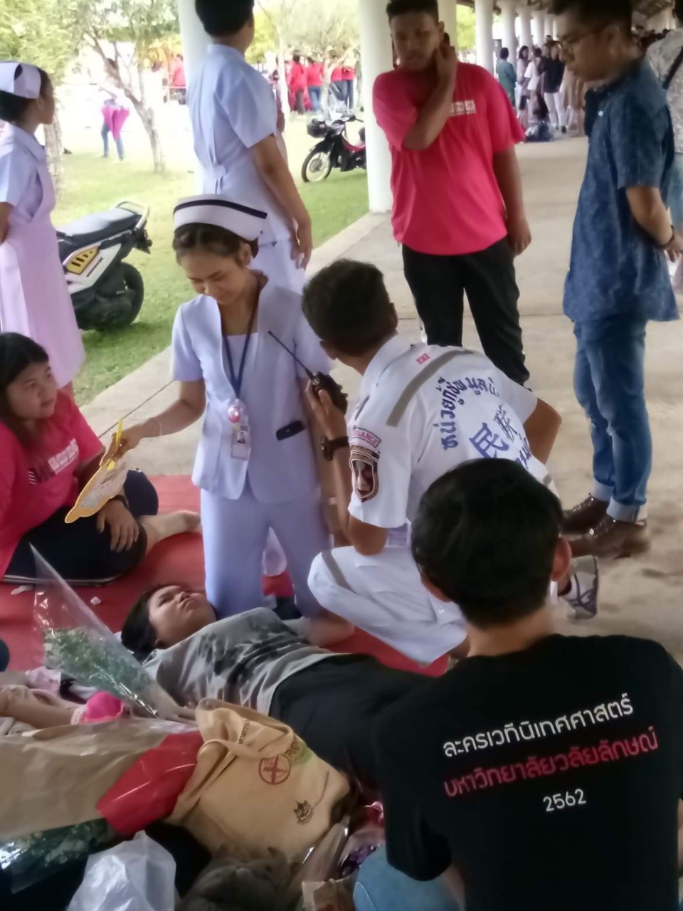 เมื่อเวลา 14:20 น. อาสา AR ชมรมนักวิทยุสมัครเล่นและอาสาบรรเทาภัย ม.วลัยลักษณ์ พร้อมด้วยหน่วยรถ EMS AR 01, เข้าช่วยเหลือสนับสนุนกรณี นักศึกษามีไข้ เป็นลม ปลุกตื่นบริเวณศาลาเรียนรวม 1 และได้นำส่งโรงพยาบาลศูนย์การแพทย์ เร่งด่วนเนื่องจากรถโรงพยาบาลศูนย์การแพทย์ติดเคสส่งผู้ป่วย และอยู่ในช่วงที่ฝนตกหนักและการปิดถนน