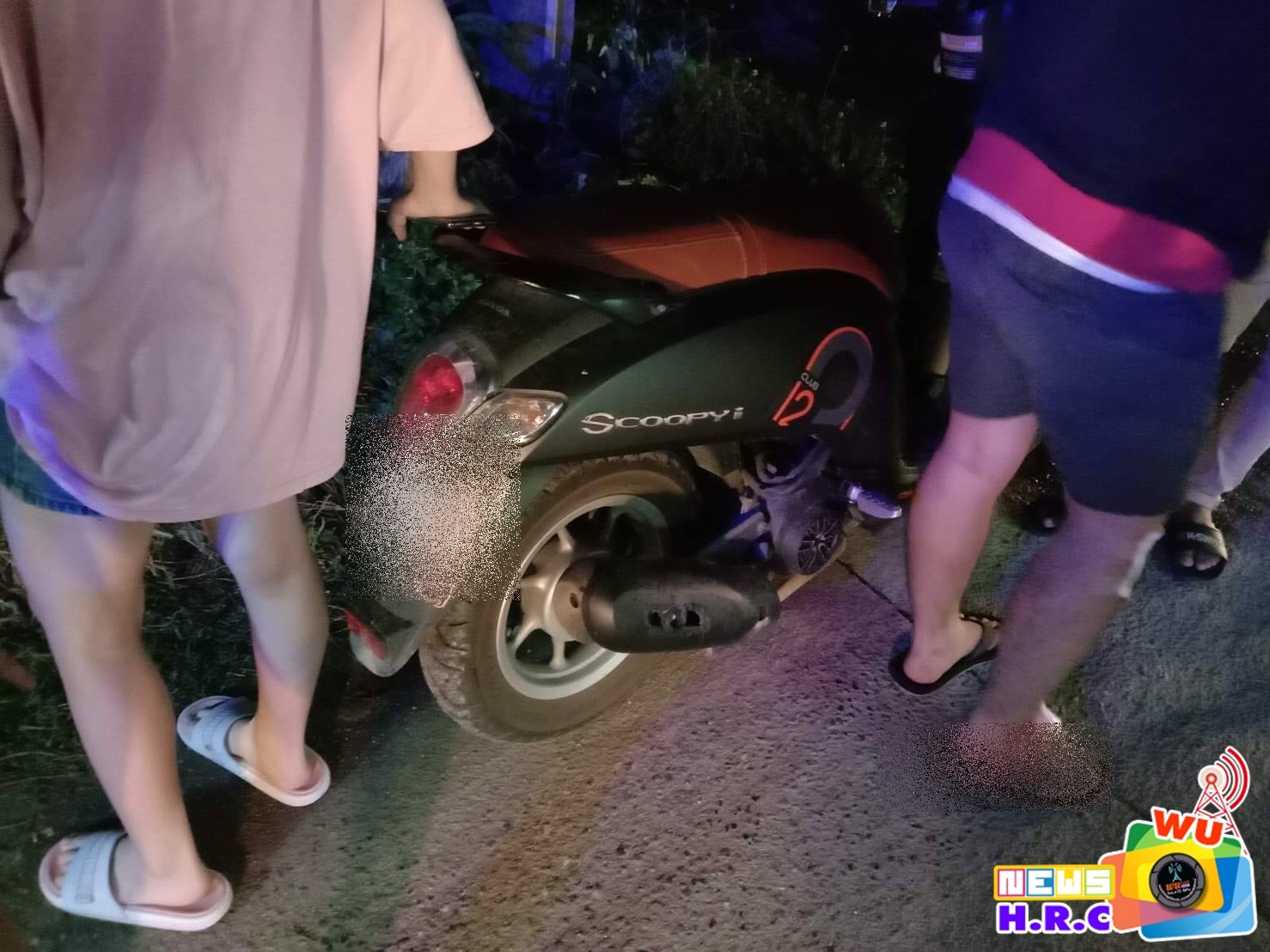 พบรถ HONDA SCOOPYI สีดำ-ส้ม จอดบรอเวณริบทางและ ผู้ชาย 3 ราย บริเณริมภายในซอยทุ่งแสงตะวัน(ซอยเป็นใหญ่) ข้างร้านเป็นใหญ่มินิมาร์ท ชายทั้งสามรายมีแผลถลอกตามร่างทาง อาสาAR-13 ( ร่วมใจ3138 )