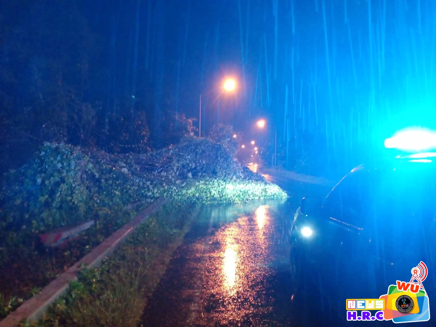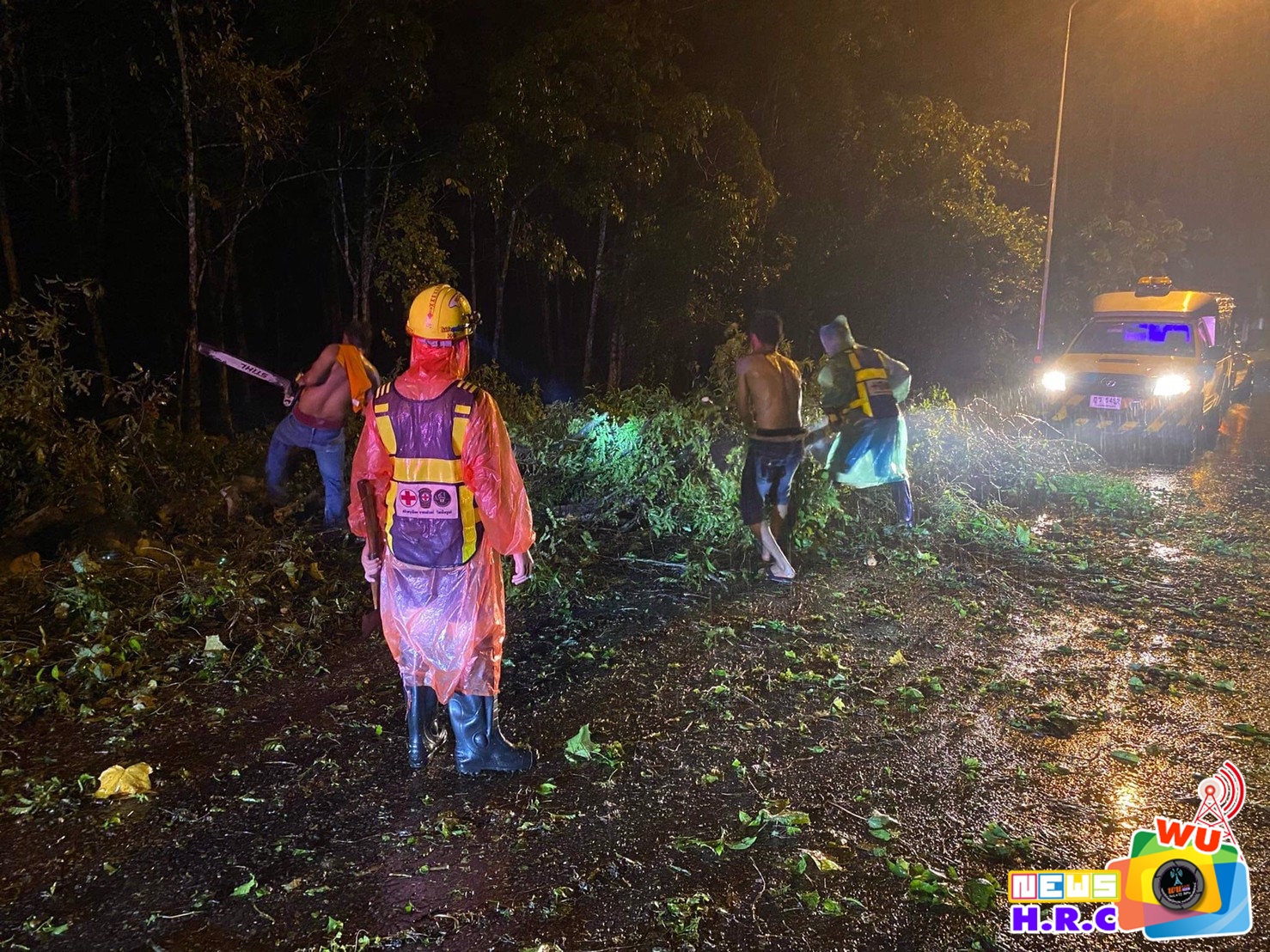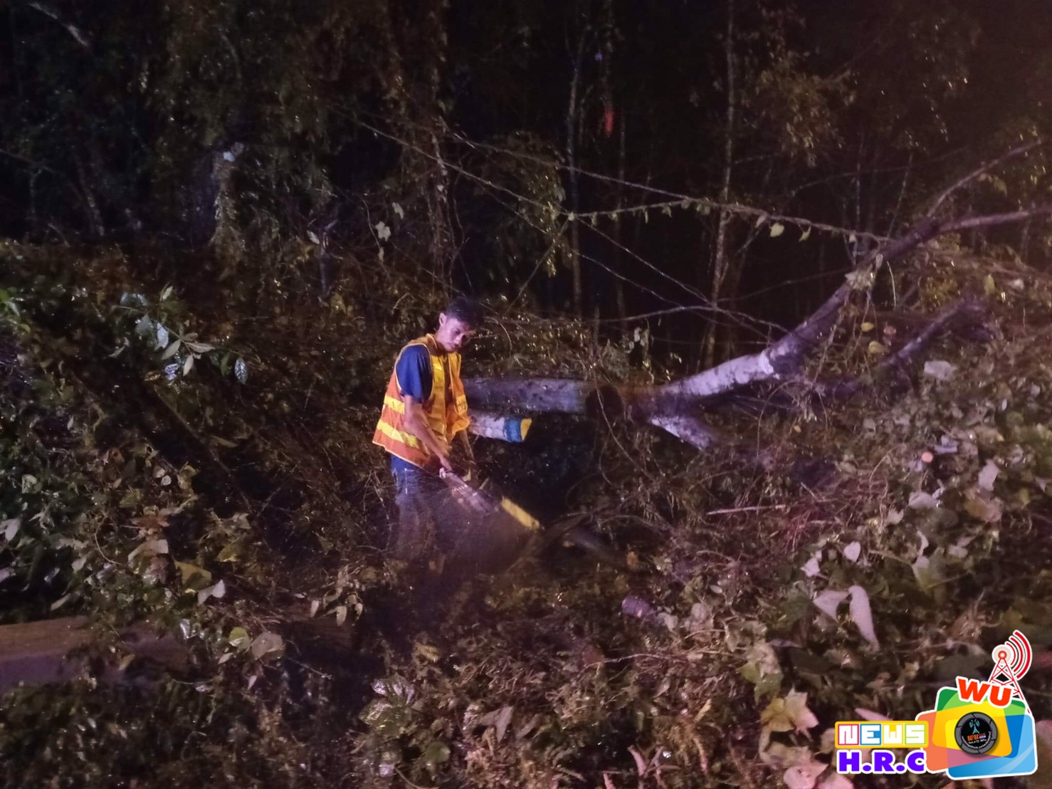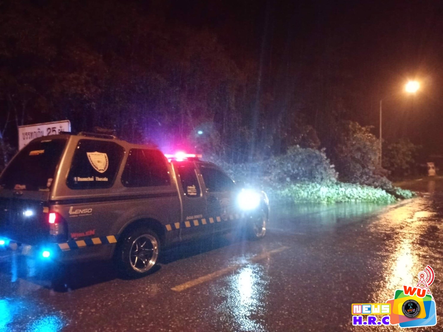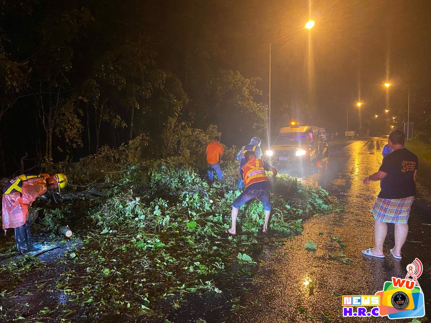 เวลา 00.30 น. รับแจ้งจาก AR300 (ร่วมใจ300) มีต้นไม่ล้มขวางถนนสาย ท่าศาลา-นบพิตำ จ.นครศรีธรรมราช